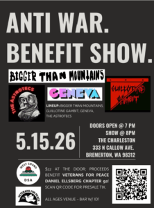 VFP Daniel Ellsberg Chapter, Seattle 92 will have a potluck picnic before the event, starting around 4pm. Bring something to share with around 15-20 folks.